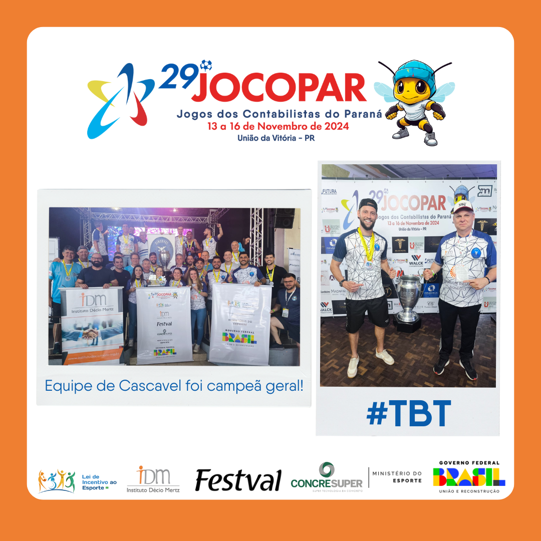 O JOCOPAR (Jogos dos Contabilistas do Paraná) é um evento esportivo de grande tradição que reúne profissionais da contabilidade, seus familiares e convidados em uma competição saudável e integradora de todo o nosso estado. O Instituto Décio Mertz tem promovido a participação expressiva de suas equipes esportivas das cidades de Cascavel, Maringá, Toledo, Paranaguá, Paranavaí e Pato Branco em edições recentes, como observado na presença marcante no litoral do Paraná na última edição no ano de 2025, com ampla participação em diversas modalidades esportivas e conquista de resultados destacados na classificação geral dos jogos.