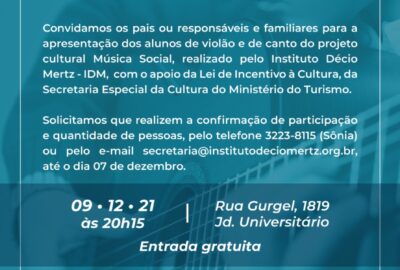 Projeto Música Social do Sincovel atende crianças e adolescentes com aulas de violão e de canto Parceria do Instituto Décio Mertz com o Sincovel permite acesso à cultura de forma gratuita; aulas serão semanais O IDM (Instituto Décio ...