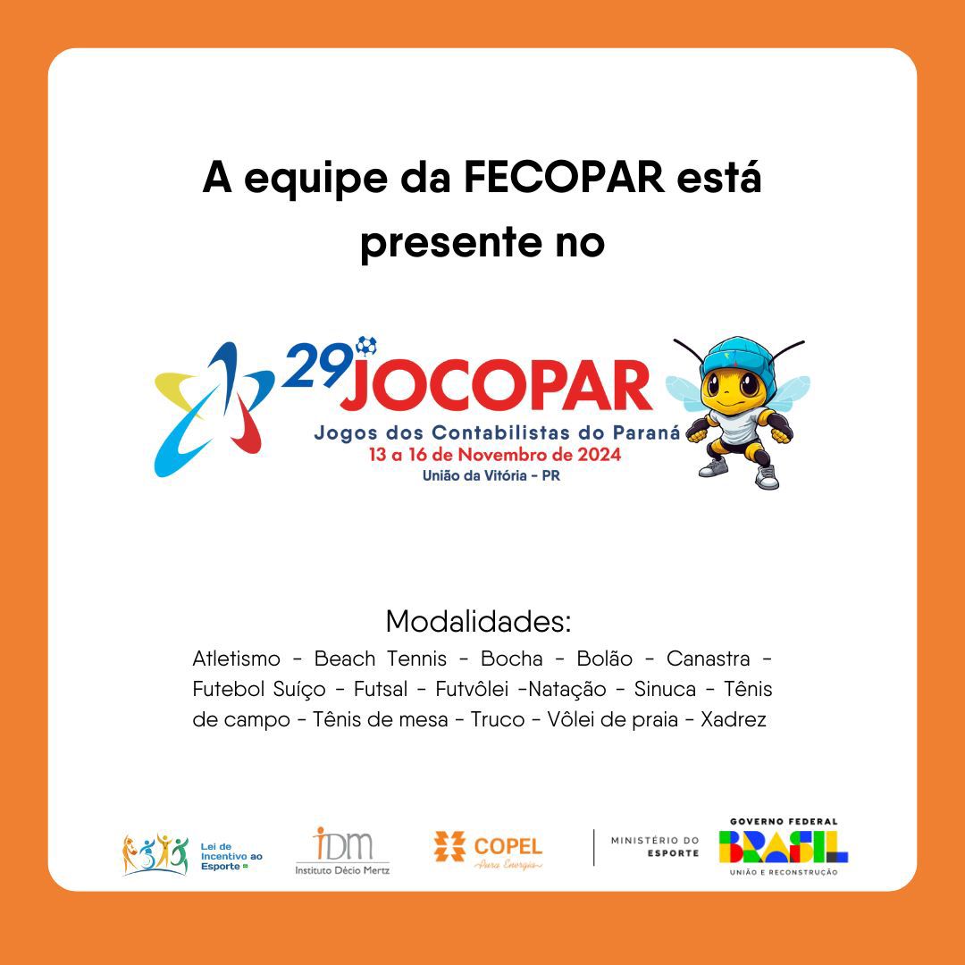 Nesta semana, entre os dias 13 a 16 de novembro, o município de União da Vitória recebe Contabilistas atletas de todo o Paraná para a realização do 29º JOCOPAR (Jogos dos Contabilistas do Paraná).